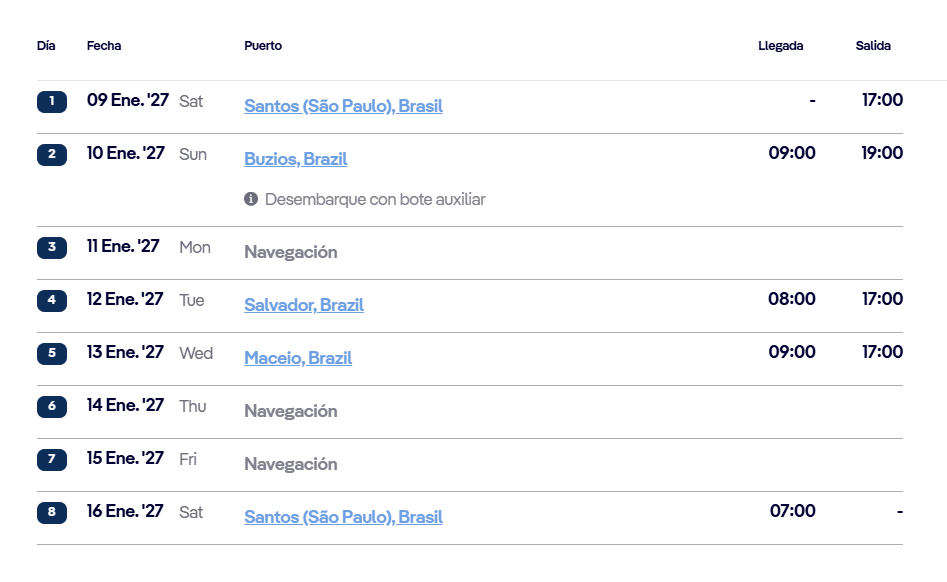 - El itinerario puede presentar ajustes operacionales por parte de la naviera.